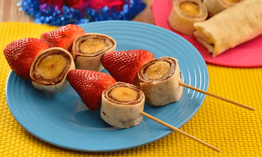 Para preparar esta tortilla dulce, esparce el chocolate fundido en la tortilla con una cuchara o una espátula, ubica el banano entero en un extremo y enrolla la tortilla hasta que obtengas un cilindro. Haz un poco de presión al finalizar el rollo por unos tres segundos para que no pierda su forma, el chocolate fundido te servirá también como pegante.