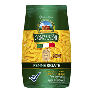 Conzazoni es una pasta elaborada 100% con trigo Durum de la mayor calidad, sin conservantes, para ofrecerte siempre una experiencia de sabor, práctica y diferente al momento de comer pasta.
