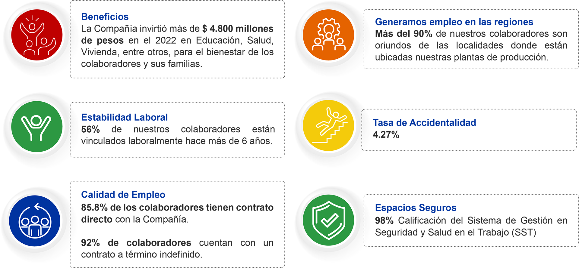 Ante entornos sociales, políticos y económicos cambiantes, buscamos fortalecer nuestro rol como Empresa que genera bienestar en los contextos donde operamos.