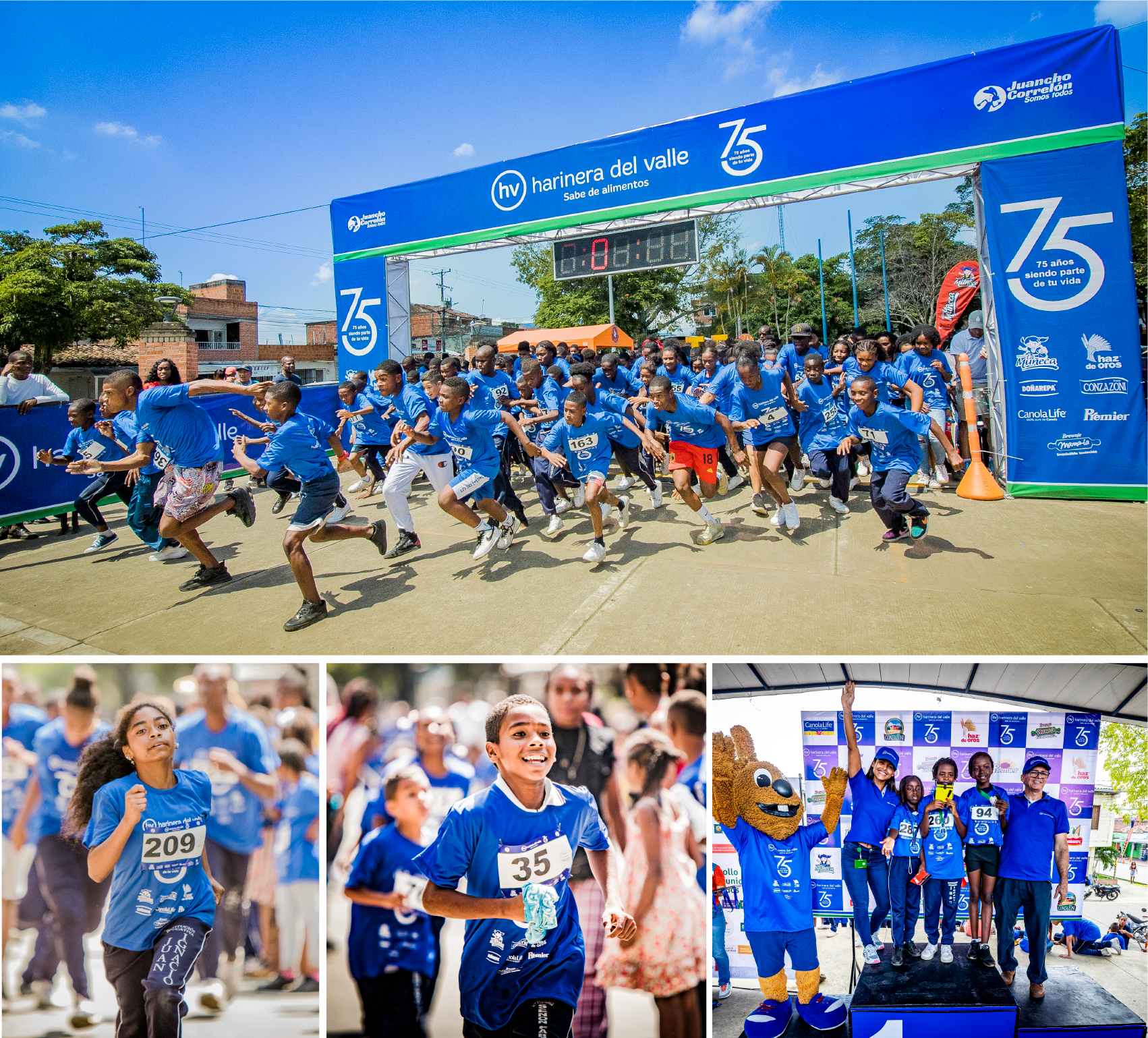 Carrera 3K Harinera del Valle 75 años siendo parte de tu vida: Fomentamos estilos de vida saludables y valores como la disciplina, el respeto y el compromiso con el autocuidado, en los 400 niños/as y jóvenes del Municipio de Villa Rica, Cauca.