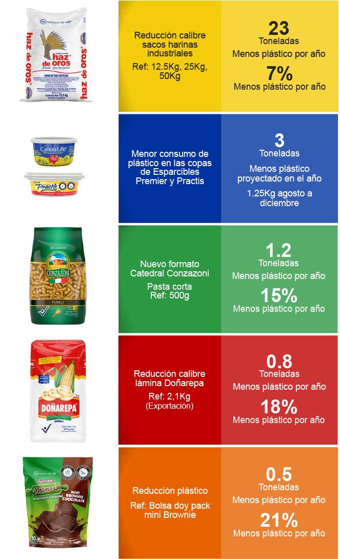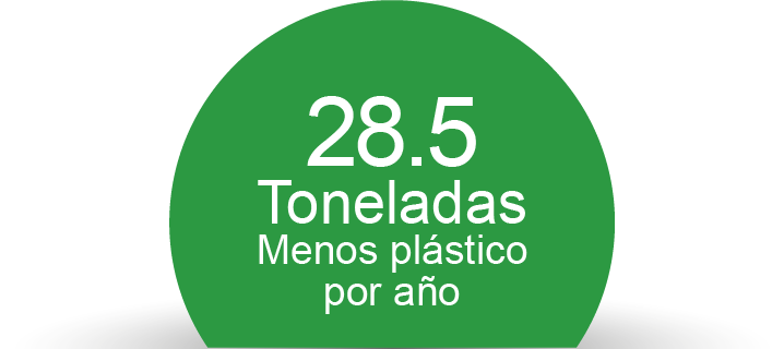 Producto del trabajo con nuestros aliados proveedores en mesas de cocreación, se logró en el año 2022 una reducción de 28.5 toneladas de plástico en nuestros empaques.